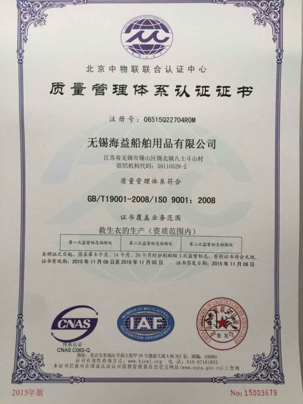 無錫海益船舶用品有限公司是船舶救生設備的專業(yè)生產(chǎn)企業(yè),地處江蘇省無錫市,屬長江金三角腹地。主要生產(chǎn)氣脹式救生衣,三片式救生衣等各種救生設備,示位燈、信號設備、救生艇筏屬具及其它船舶配件。公司產(chǎn)品已越來越受世界各國用戶的青睞。